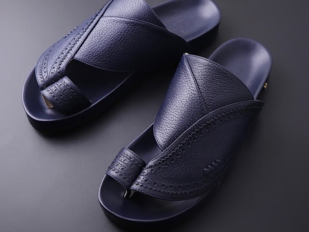 حذاء غرناطة الشرقي من ماركة نقوة المميزة. ينفرد الحذاء بتصميم يدمج عبق الماضي والحاضر حيث تميز التصميم بجلد عالي الجودة مما يحافظ على متانة وعمر الحذاء لفترة طويل ويعطي الراحة الكاملة اثناء ارتداءه والمشي عليه من ابزر مميزات الحذاء يتميز لون الحذء بدرجة اللون الكحلي . البطانة الداخلية للحذاء تأتي جلد.وتتميز ايضا الطبقة العلوية بجلد طبيعي .باطن الحذاء مبطن لتوفير الراحه اثناء الارتداء.خيوط الحذاء مصممة خصيصا لتناسب الزوق.الحذاء تم تصميمه بشكل كامل يدوياً وتحت أمهر الحرفيين