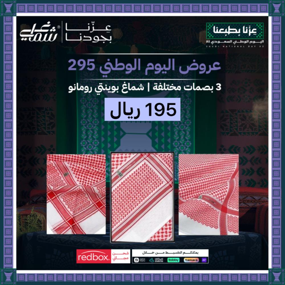 اقوى عروض اليوم الوطني على شماغي متاحة الآن بخصومات تصل حتى 80% مع كود خصم إضافي KSA95