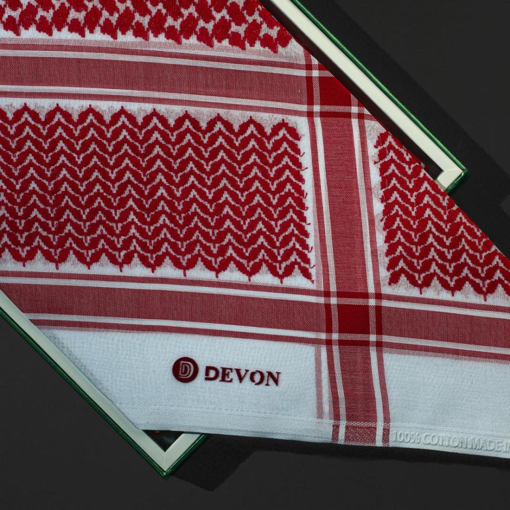 شماغ ديفون الجديد رسمة مميزة ورسمية خلية مميزة بتصميم أنيق باللون الأحمر الزاهي يجمع بين الأناقة والتصميم العصري، مما يجعله خياراً مثالياً لك، قطن 100%