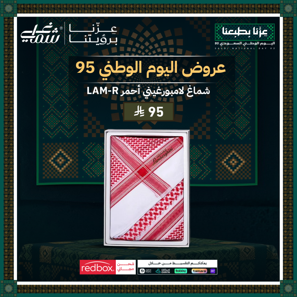 يُعد شماغ لامبورغيني أحمر إبداع فاخر في كل تفاصيله بدايةً من الخامات المصنوع منها إلى النقوش التي تزينه، فقد تم تصميمه لهواة الإطلالة الفاخرة، مصنوع من خامات قطنية 100% لا يسبب التعرق حتى مع الارتداء لفترات طويلة، انطلق بسرعة لامبورغيني نحو التألق، واستمتع بإطلالة مختلفة في كل مرة ترتديه فيها